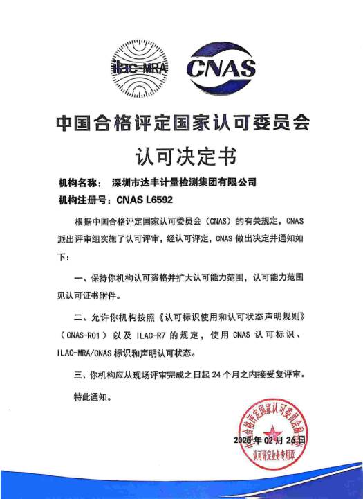 关键:校准证书需带CNAS标识与校准专用章,确保量值可溯源至国家/国际标准。